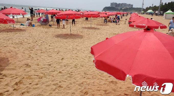 [사진] 2m 간격으로 설치된 파라솔 - 머니투데이