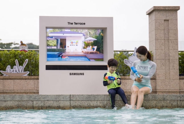 '더 테라스'는 주택의 야외 공간이나 레저 시설에 설치해 실외에서도 고화질 영상을 즐길 수 있도록 한 TV로 지난 5월 북미에 첫 선을 보였다. 국내 시장에는 다음달 중순 공식 출시될 예정이다.