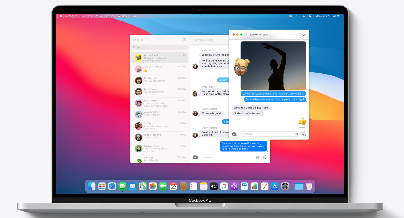 アプリはフルハイトのサイドバーや作り直されたツールバーなど、とてもクリーンに。Dockも美しくアップデートしつつ、よく使うアプリが見つけやすくなりました。アイコンもMacらしさを残しながら統一性ある形になり、全体として視覚性や操作性が向上しています。