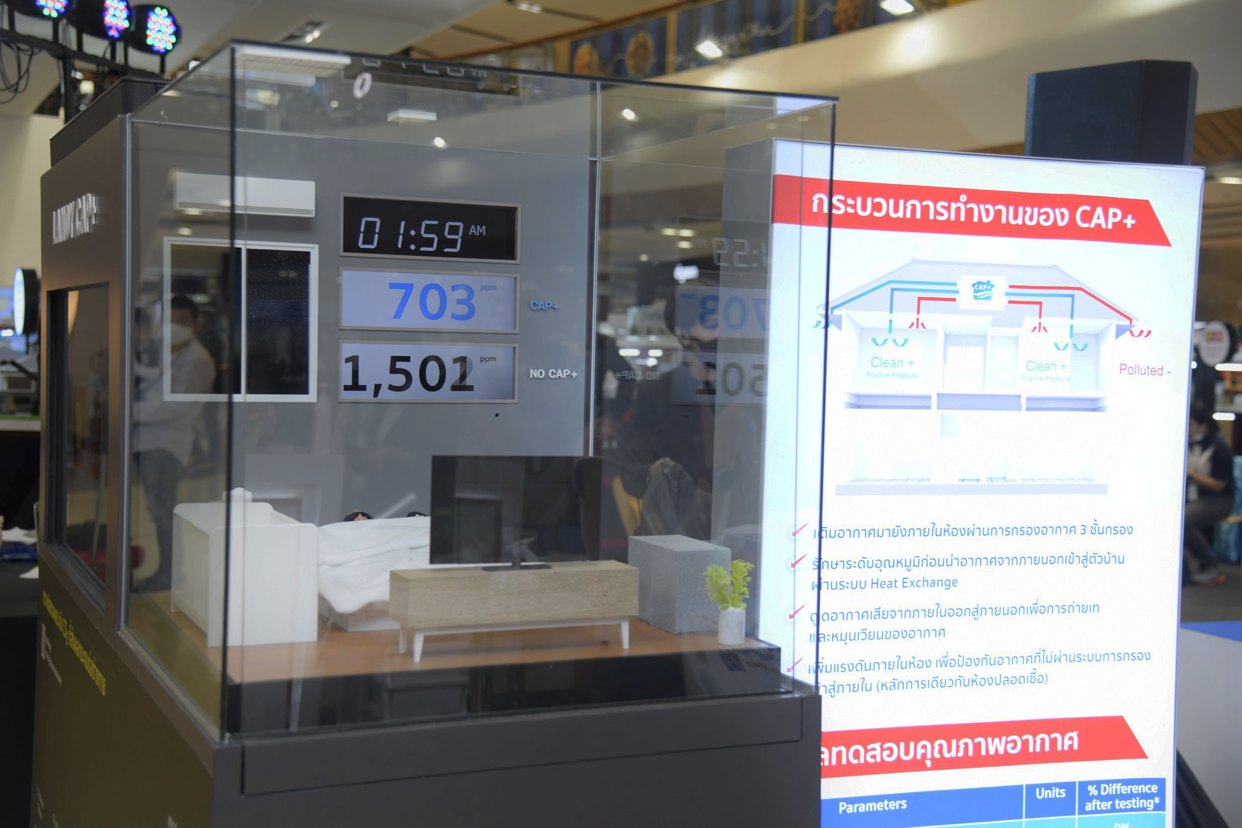 เทคโนโลยี CAP+ คือเทคโนโลยีควบคุมคุณภาพอากาศ ที่มีกระบวนการทำงานด้วยการดึงอากาศภายนอกเข้ามาภายในบ้านผ่านระบบต่างๆ โดยลดระดับคาร์บอนไดออกไซด์ รักษาระดับออกซิเจน ลดฝุ่น PM 2.5 อีกทั้งยังช่วยลดการสะสมของแบคทีเรียและความชื้น จึงเป็นระบบที่สร้างสมดุลอากาศ เน้นการหมุนเวียนในอากาศให้มีสภาวะอากาศที่ดี เหมาะต่อพัฒนาการด้านสมองของเด็กในวัยเรียนรู้ และการนอนหลับที่มีคุณภาพ รวมถึงสุขภาพที่ดีของทุกคนในบ้าน